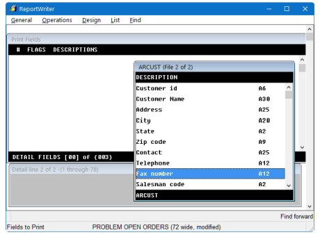 This exercise shows how to create a report that uses data from more than one file. Our report will use data from two files: the open order file and the customer file.
