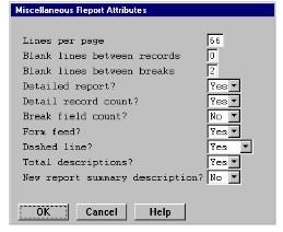 The Miscellaneous Report Attributes window enables you to modify the following: