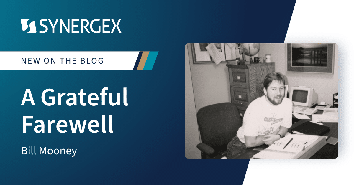 April 14, 2026 Published by William Mooney on April 14, 2026Categories News President's ThoughtsA Grateful FarewellTomorrow, April 15, Synergex celebrates its 50th year in business. It’s also my last day after 40-plus years as an employee, and I wanted to take […]