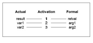 When calling a subroutine with the XCALL statement, the actual, formal, and activation mapping is straightforward. The first actual argument corresponds to the first activation argument, which corresponds to the first formal parameter. The second actual argument corresponds to the second activation argument, which corresponds to the second formal parameter, and so on.