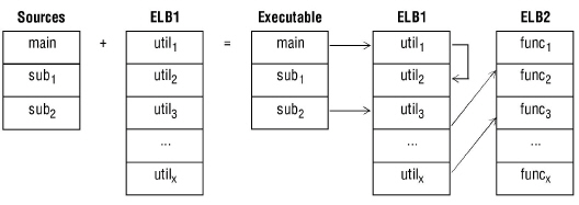 An ELB subroutine is independent of the executable files that access it. You can change ELB subroutines without modifying the executable file and without relinking any programs that access the subroutines in the ELB. If you change a subroutine in an object library, you must relink all programs that use the object library to ensure they have the most recent code.