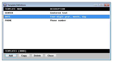 | 3. | Exit the window to save the new template and return to the Template Definitions list. |