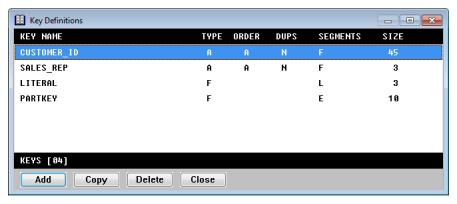 The Key Definitions list displays the following information for each key in the selected structure. The total number of keys for this structure is displayed at the bottom of the list. (See figure 1.)