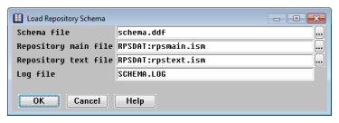 2. Select Utilities > Load Repository Schema. The default repository filenames displayed are determined by the logic discussed in Determining the repository files used.