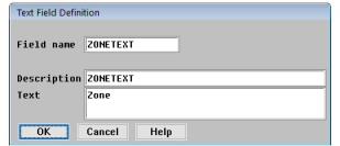 Enter “Zone” in the Text field, as shown in figure 2. You’ve now created a text field. User-created fields are stored in their own temporary file for use in your report. |