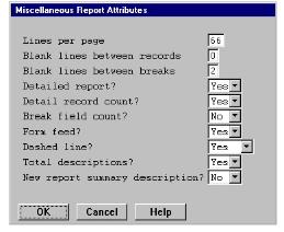 The Miscellaneous Report Attributes window enables you to modify the following: