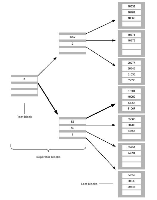 ISAM indexes are also structured hierarchically so that access to any particular record occurs with a minimum of index reading. Access to any data record by a particular key requires the same amount of index reads, provided the index doesn’t change. This number is determined by the index depth. Keyed access requires one index READ for each level of the index. The number of levels required for an index is universally proportional to key length. Large ISAM files (one million or more records) with long keys (45 or more characters) have five or more levels of index depth.