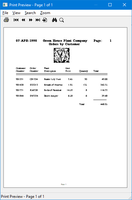 You can also print from the previewer by pressing Ctrl+P. In Synergy .NET, the [STAThread] attribute must be present at the top of the Main method in order for this to work. If [STAThread] is missing and Ctrl+P is pressed, an “Argument is missing” error ($ERR_ARGMIS) occurs. |