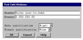 You can modify a field’s header, format, data justification, or format justification.